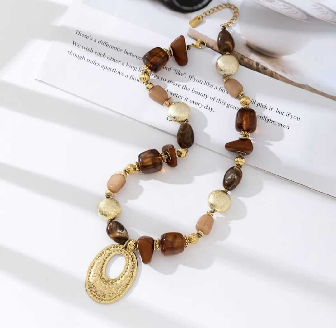 Collier Arthur aux tonalités chaudes de marron, beige et doré