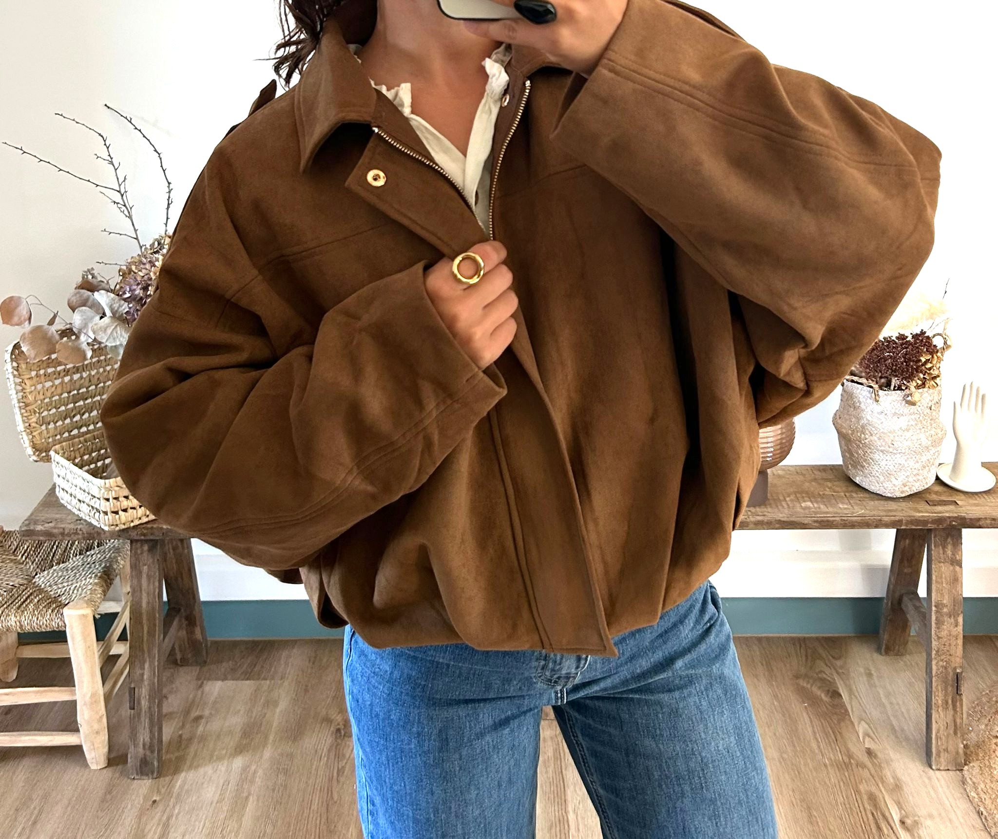 Blouson Angel en suédine couleur camel