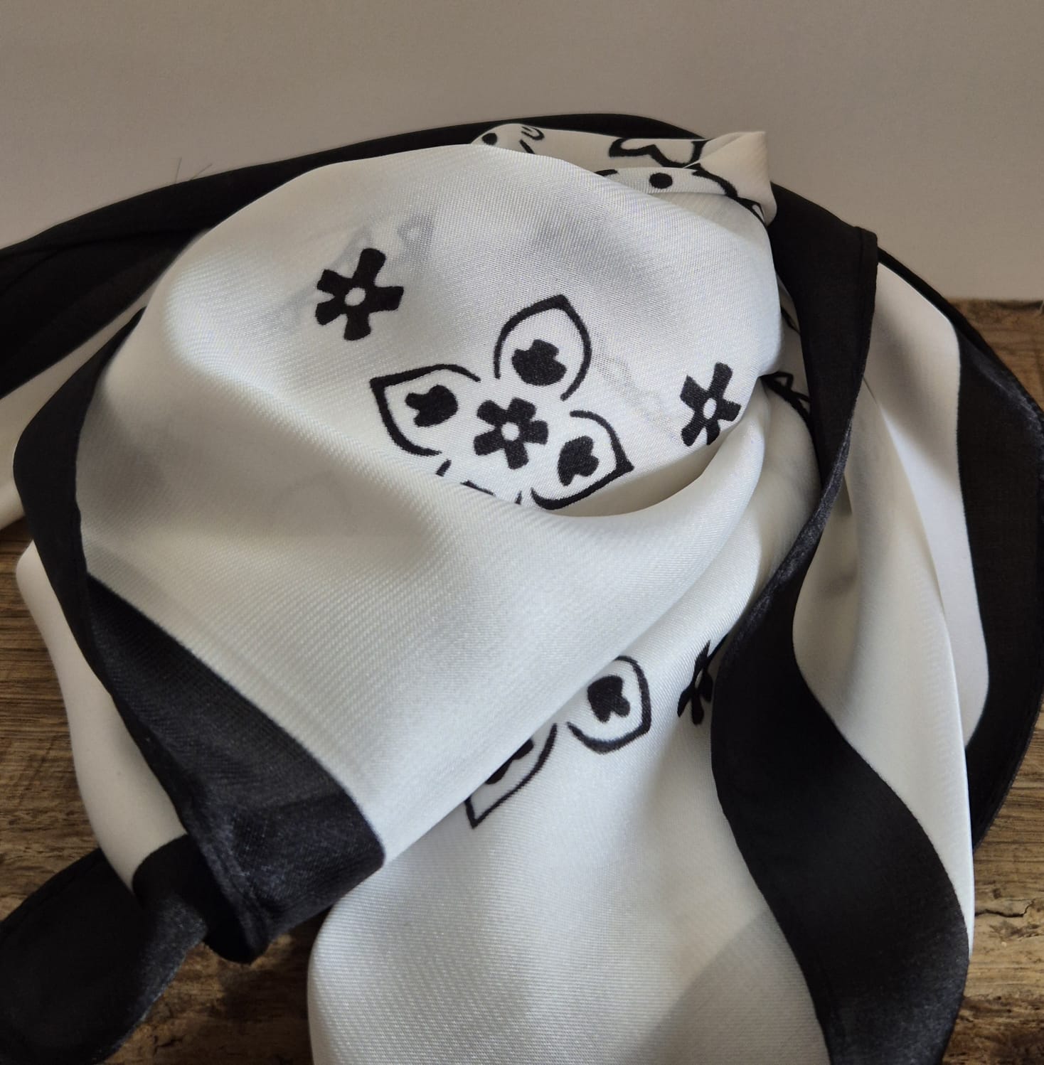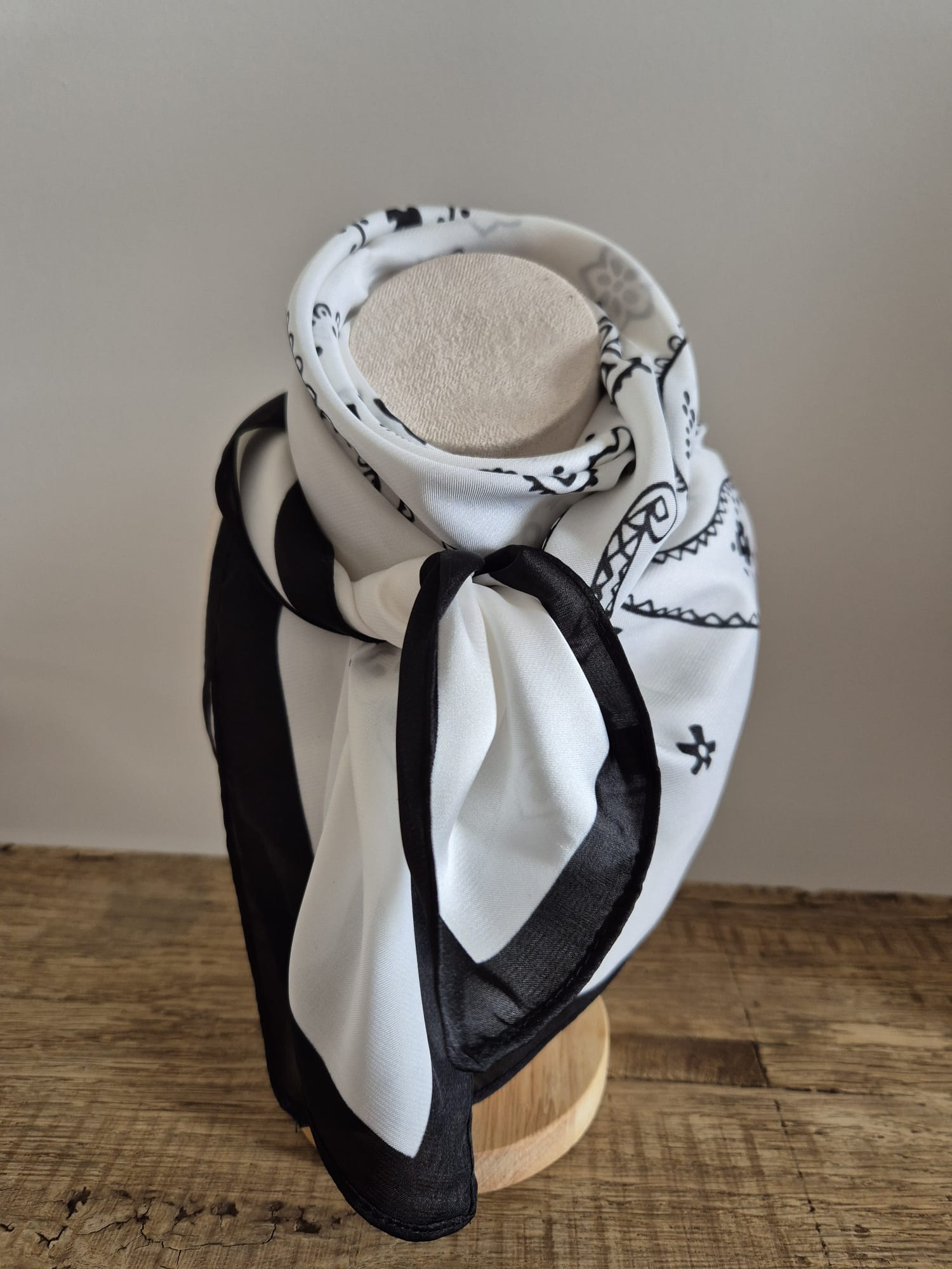 Foulard carré 70 cm x 70 cm COULEUR BLANC ET NOIR