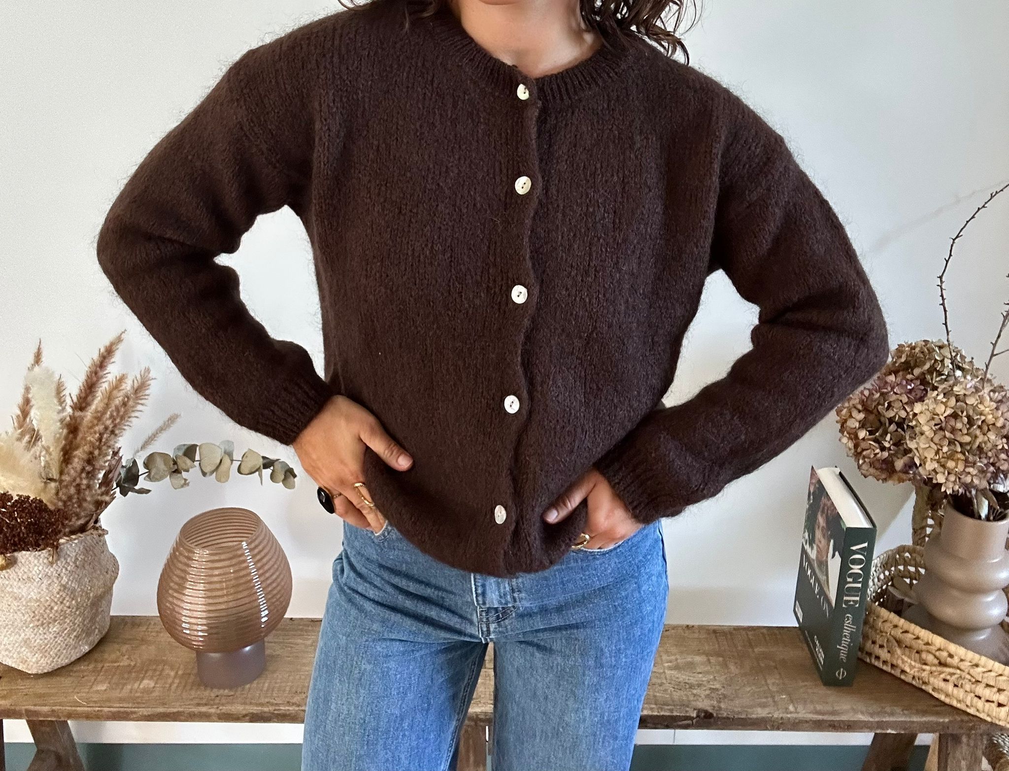 Gilet chocolat col rond - Composition 40 % Mohair 30 % Acrylique et 10 % Laine