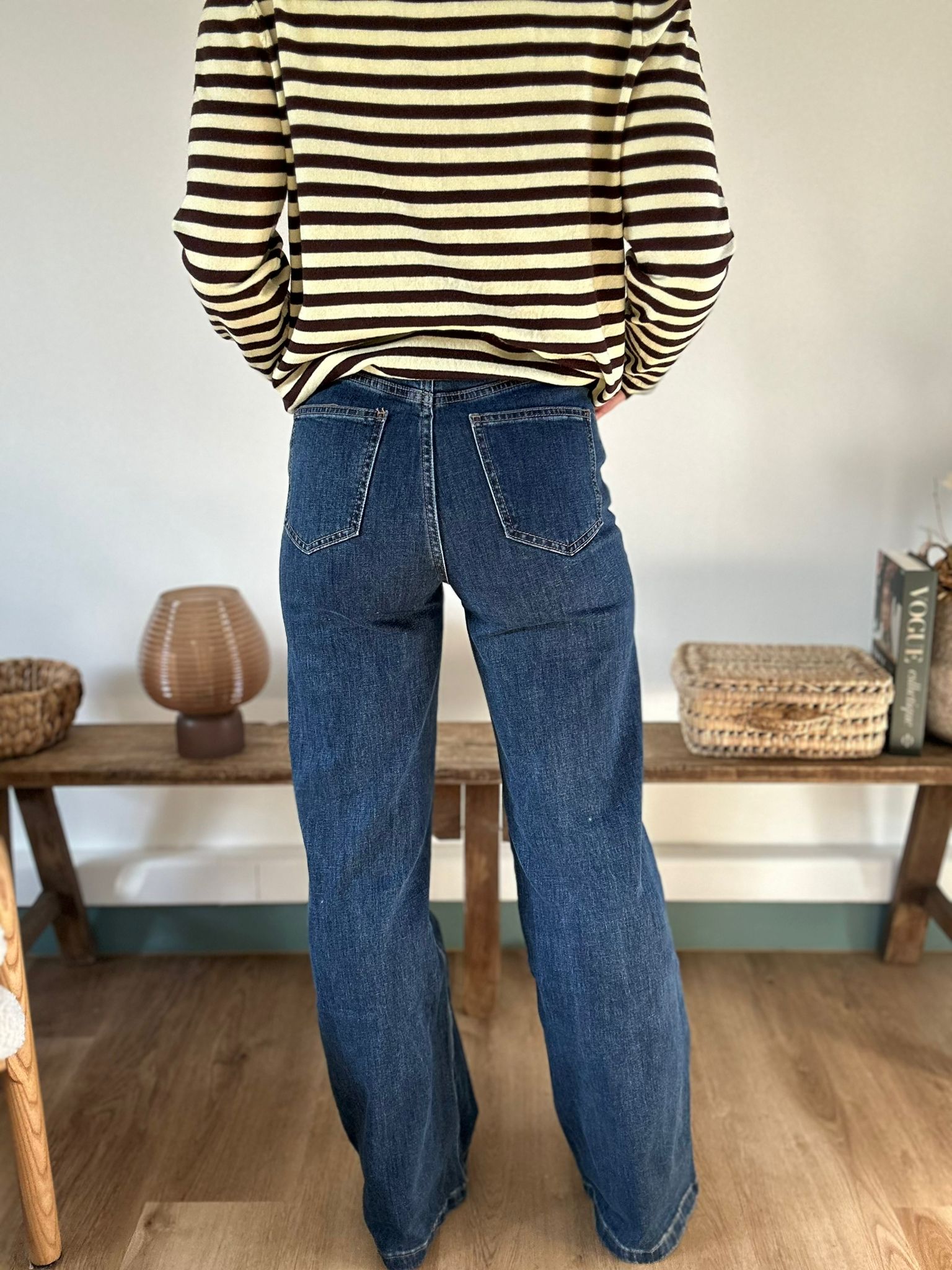Le pantalon tendance du moment : le Jean Agathe avec sa coupe ample . Il est parfait pour adopter un look casual bohème, de plus grâce à sa toile souple il suit les mouvements de votre corps.