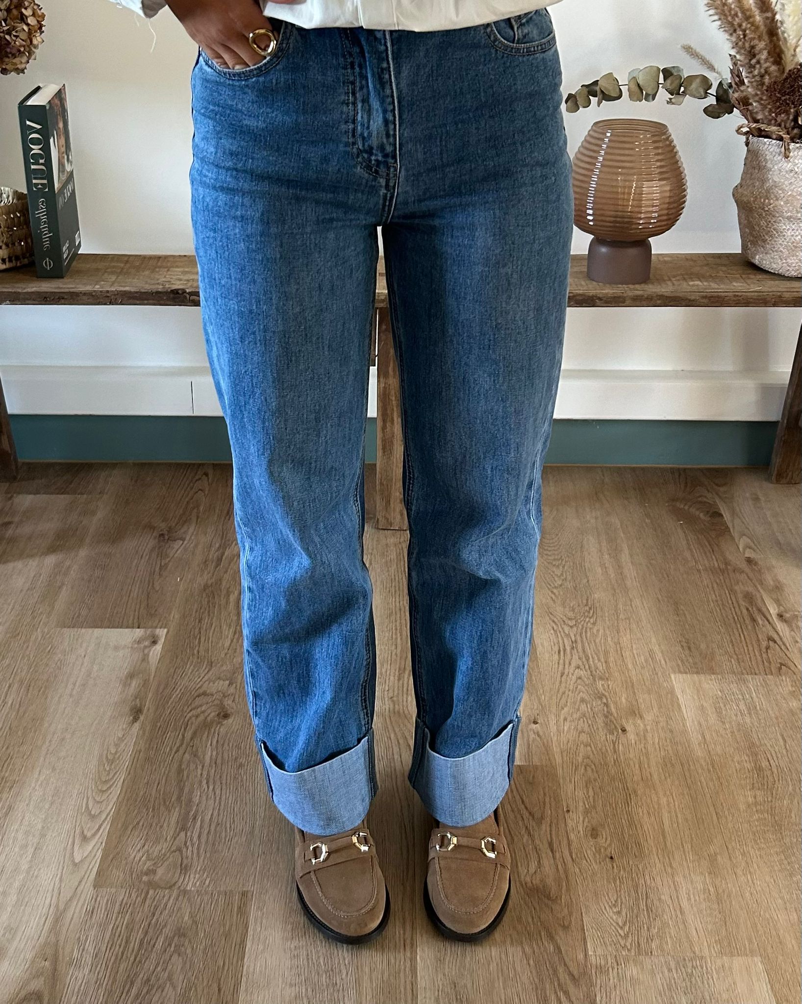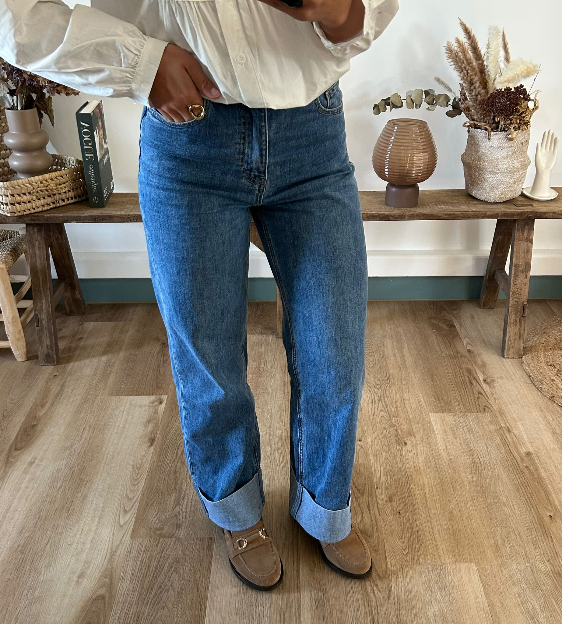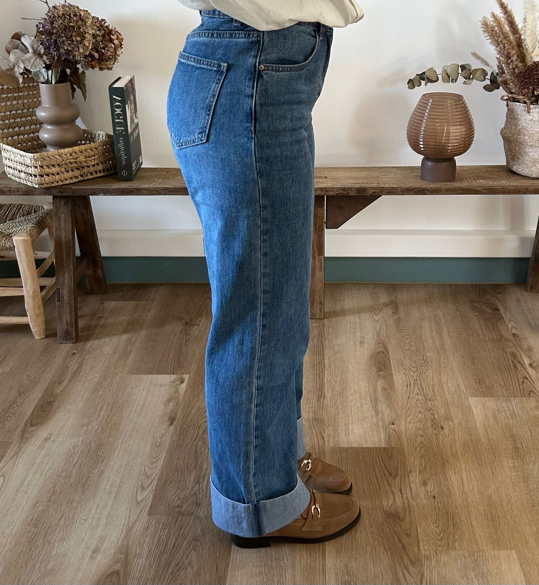 Jean SAM  coupe wide taille haute.  Ourlet revers en bas des jambes