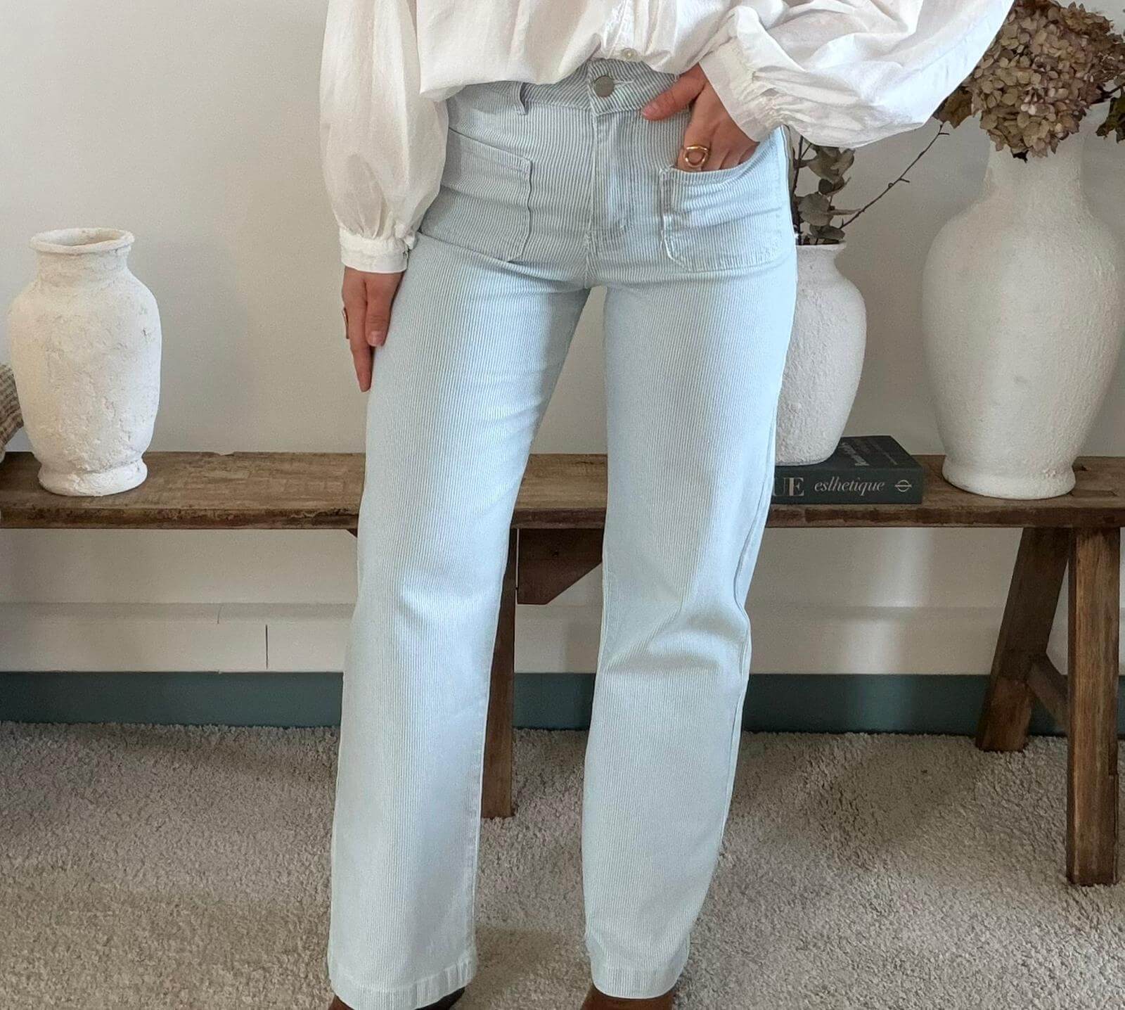 Pantalon Hugo femme en toile bleu clair à fines rayures